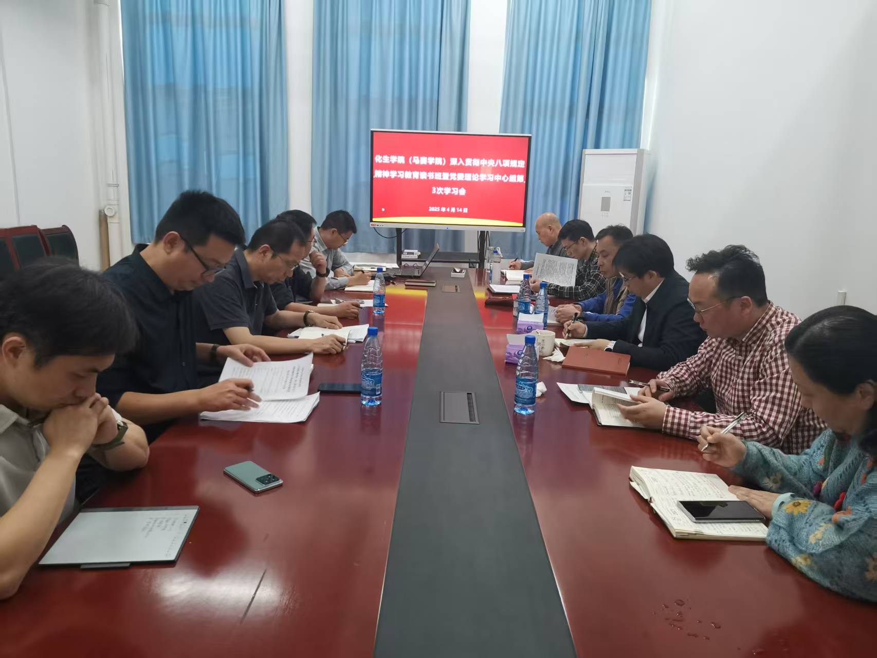 4月14日下午,化生学院(马赛学院)在化生大楼N331A会议室开展党委理论学习中心组第3次集体学习暨深入贯彻中央八项规定精神学习教育读书班活动,并进行深入研讨。学院党委书记韩同远主持集体学习,中心组成员、读书班成员参加学习。