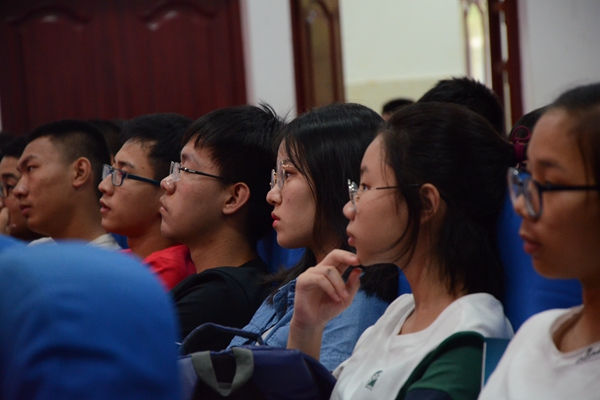 优秀学生代表陈颖霖同学发言,回忆自己两年的大学生活,以亲身经历告诫新生,在大学最重要的就是找准个人定位不要随波逐流。她说道:“每个人的大学都会有不同的经历,或沉浸在图书馆的书海,或重拾曾暂且放下的兴趣爱好,或投身丰富多彩的社团活动中,四年时光转瞬即逝,最重要的是定下目标并做好规划。”